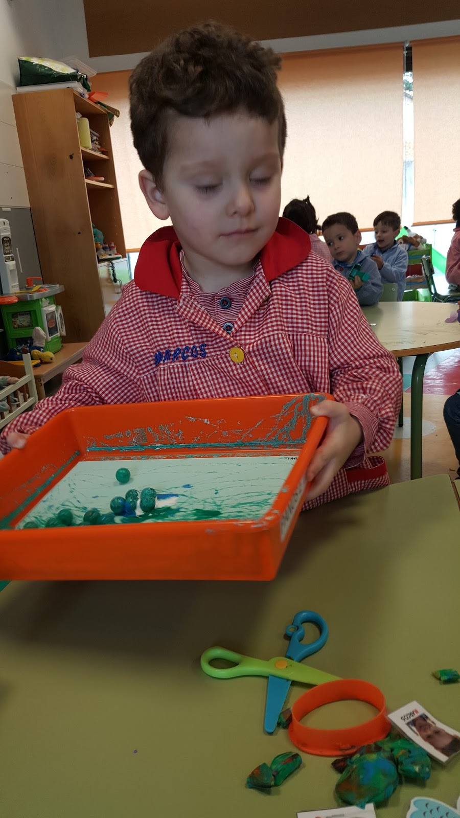 Esta semana tocou pintar as cores do mar con canicas!!! unha experiencia moi divertida.